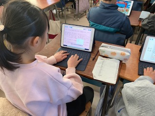 キーボードで文字をはやく打つ練習をしました。これまでの練習で、みんな随分とはやくなりました。