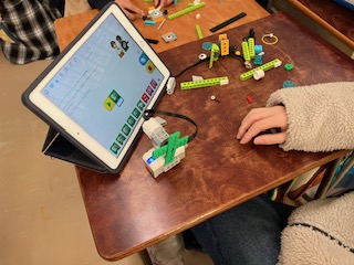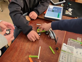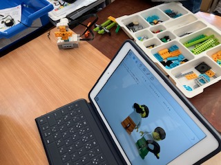 プログラミングの学習です。レゴを組み立てて、iPadでプログラムを設定すると、決められた動きをする装置。子どもたちは夢中になって進めていました。