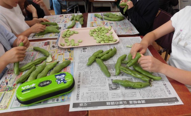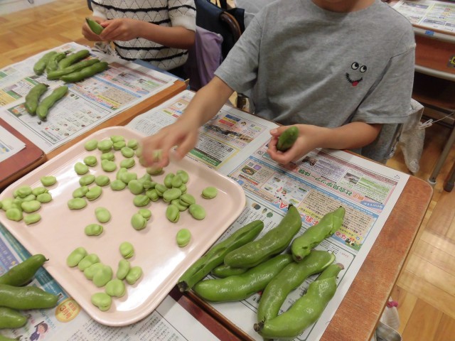 今日の給食で使用した「そら豆」は、2年生がさやむきをしてくれました。