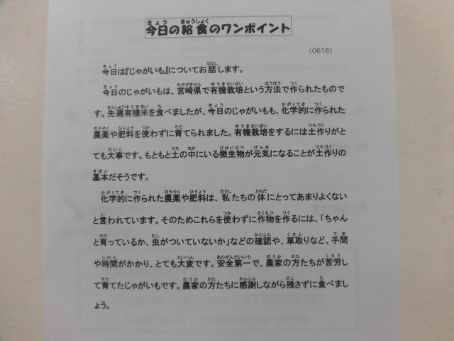 今日の給食で使われているじゃがいもは、宮崎県産の有機じゃがいもです。