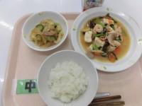 『今日の給食』 ごはん 豆腐のうま煮 春雨サラダ 牛乳