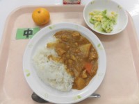 『今日の給食』 カレーライス 白菜とコーンのサラダ ノーワックスみかん 牛乳