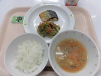 『今日の給食』 ごはん さばの塩焼き 白菜と小松菜ののりあえ みそ汁 牛乳*今日...