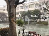 下校の時間です。寒そうに帰る子、はしゃいでいる子、さまざまな様子が見られます。
