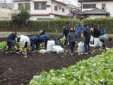 今日は3時間目に小松菜取りに行ってきました。今日、収かくした小松菜は「城南小松...