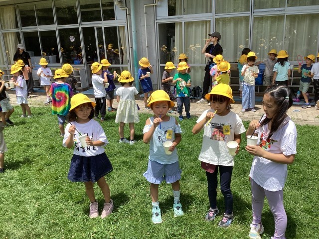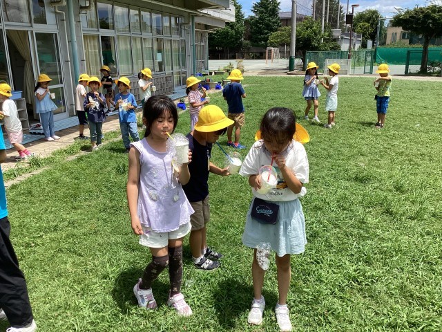 今日は終業式。1年生は4時間目に、生活科「夏 シャボン玉であそぼう」の学習に取り組みました。みんな、大盛り上がり。シャボン玉をたくさん作るこつを見付けていました。夏はたくさん遊びがありますね。よい1学期の思い出になりました。