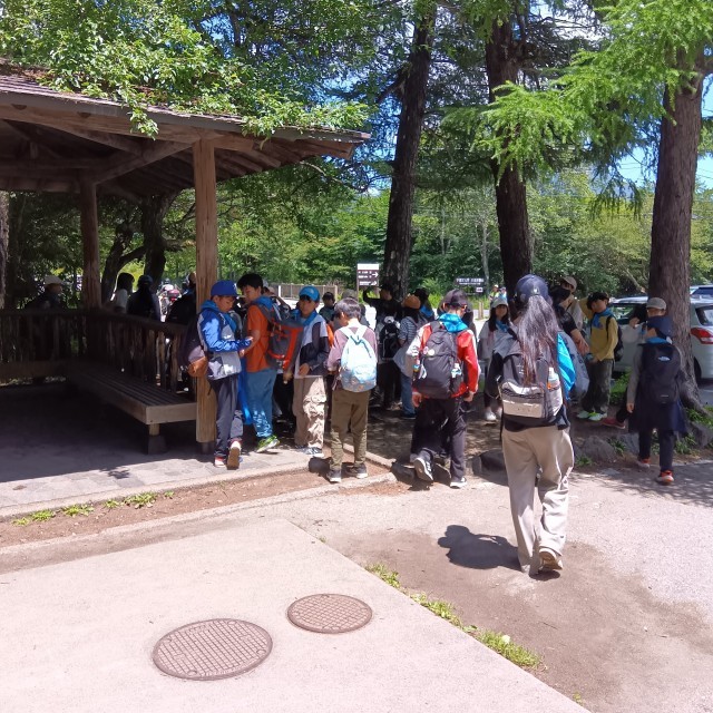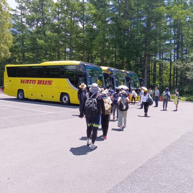 頑張って歩いて赤沼に到着しました。バスに乗って三本松に向かいます。