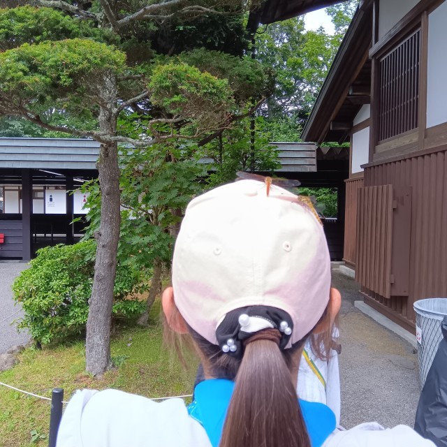 華厳の滝見学に行きます。帽子にトンボが2匹も!