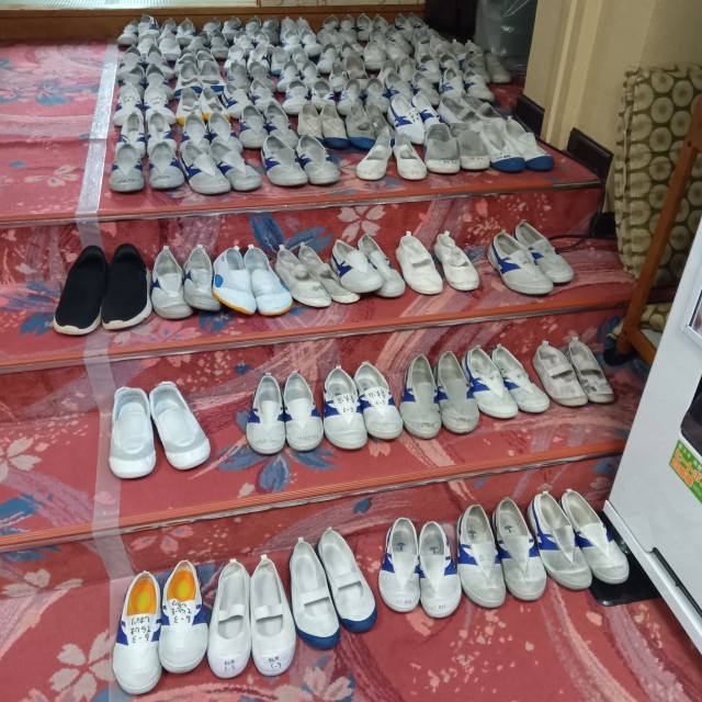 夕食の時間です。学校でも「くつそろえ」を頑張っていますが、日光でも食堂前の上履きそろえをしっかりやっていて立派です。