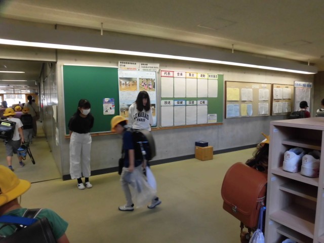 自分たちで廊下や玄関など担当場所を決め、朝のあいさつに取り組んでいます。