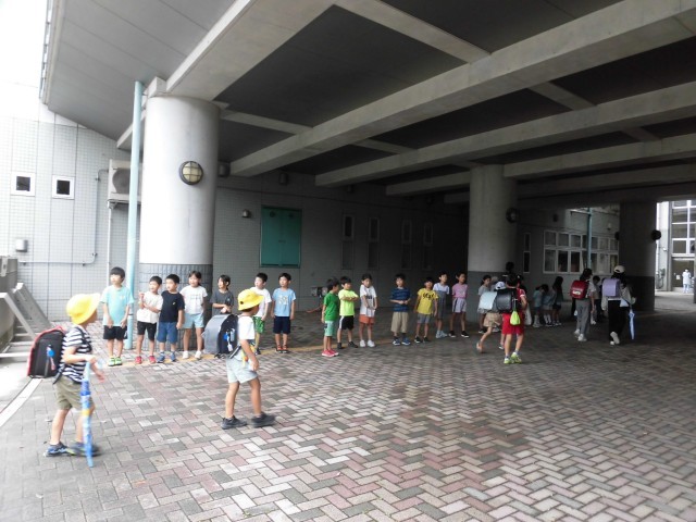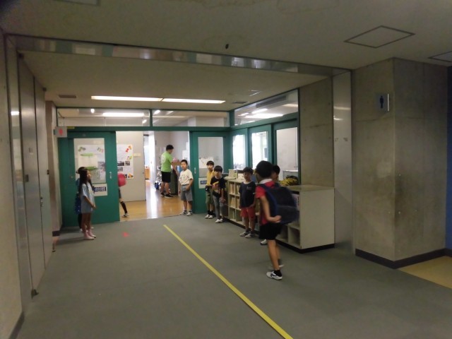 正門前であいさつしてくれた子がたくさんいて、元気な声が響いていました。