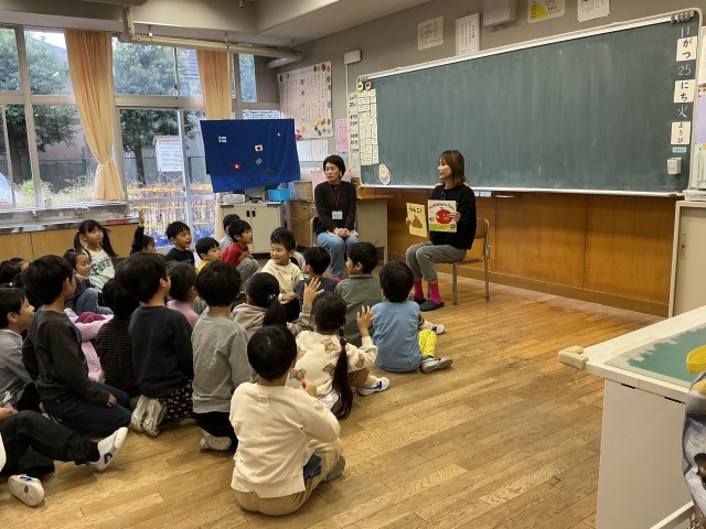 11月25日(火)、今日は保護者の方による読み聞かせです。今のシーズンにぴったりの話を聞かせてくださいました。子どもたちは、興味津々でした。話に反応する子どもたちの姿、とってもすてきです。