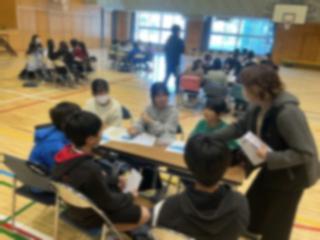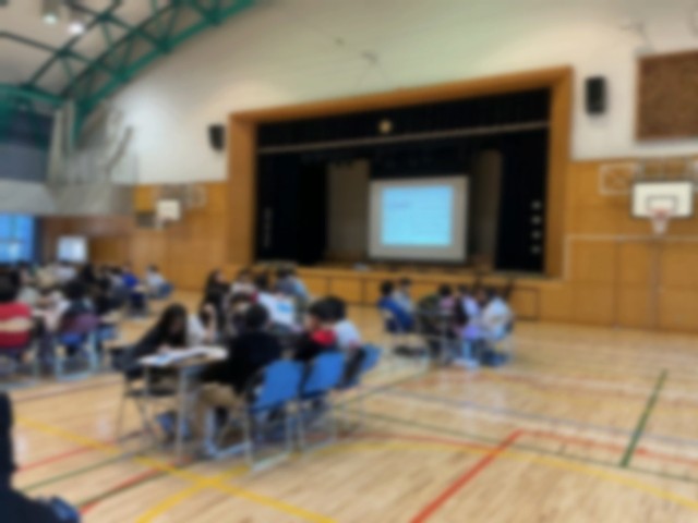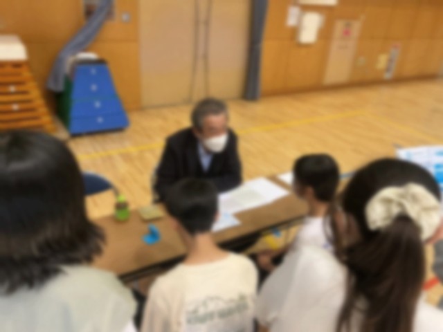銀行の方に来校いただき、学習発表会で実際に販売したキーホルダーの決算報告を行いました。