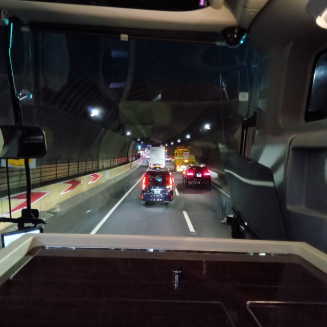 トンネル内混んでいます。1号車は今日見学で学んだことクイズをしています。クイズに正解して「浪漫飛行」をみんなで合唱しています。
