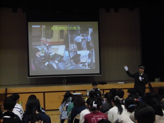今日は、京王電鉄 細谷さん、八幡山駐在所 武藤さん、東京都医学総合研究所 宮岡さんをゲストティーチャーにお招きして、キャリア教育の授業を行いました。