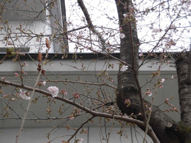 校庭の桜の花が開花しました。