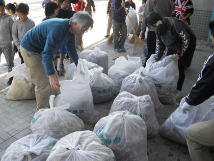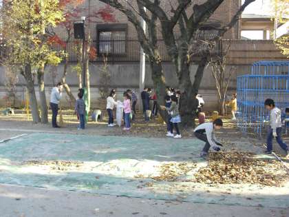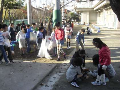 学年ごとに担当を決めて、校庭やピロティ、学校の周りをきれいにしていきました。
