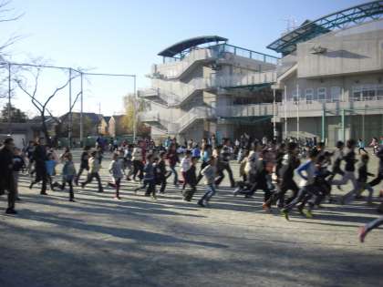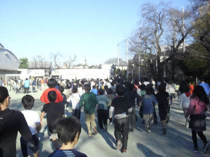 集会委員が出すお題に当てはまる人は校庭を一周走ります。