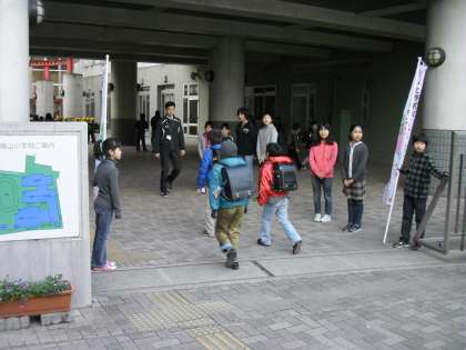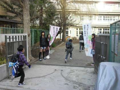 寒さも吹き飛ばすような元気な挨拶を八幡山小の人だけでなく、
