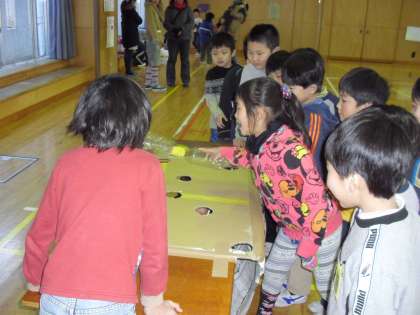 2年生があそびランドに1年生を招待しました。たくさんのお店が体育館にできました。1年生は、いろいろ遊ばせてもらって、楽しみました。2年生は、1年生に喜んでもらうことを喜ぶことができました。保護者方、先生たちの参加も2年生は、大喜びでした。