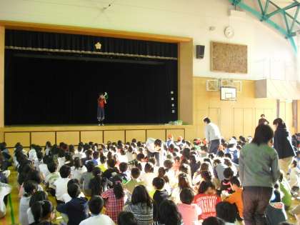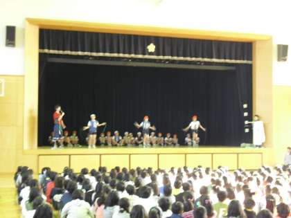 運動委員に舞台上でいくつかの技を模範でやってもらいました。