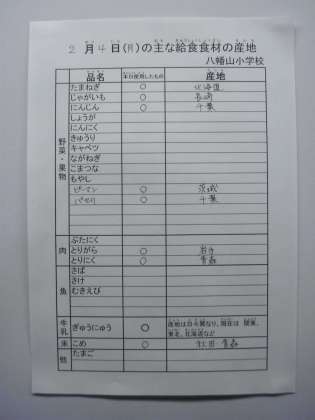 2月4日の主な給食食材の産地です。