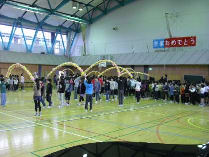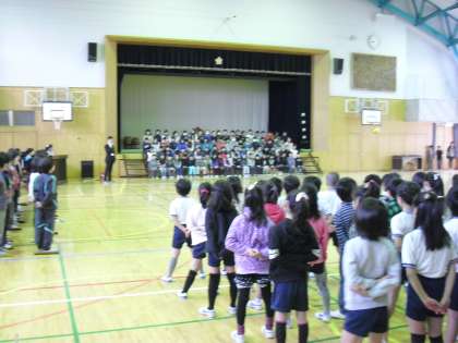 朝の時間から1時間目を使って全校で6年生を送る会が行われました。。