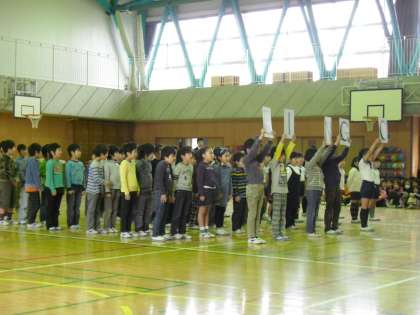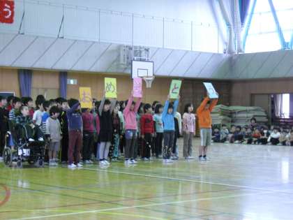 この歌は6年生のよく知っている歌で、2年生と6年生が一緒になって楽しむことができました。