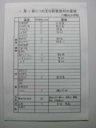 4月16日の主な給食食の産地です。