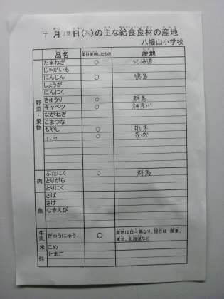 4月18日の主な給食食材の産地です。