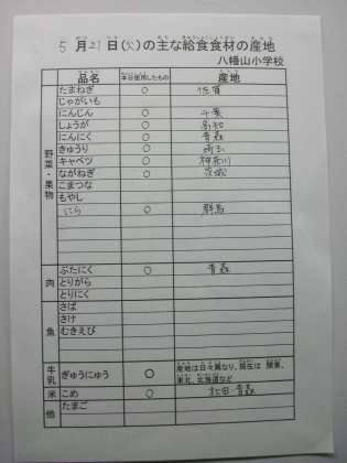 5月21日給食食材産地