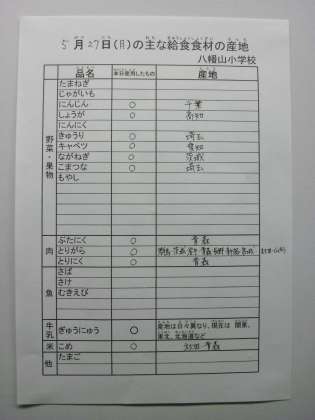 5月27日給食食材産地