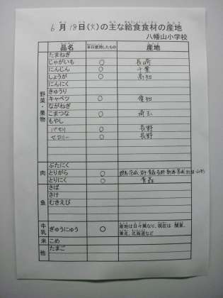 6月18日の主な給食食材の産地です。