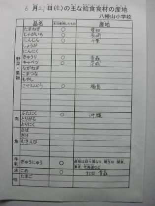 6月21日の主な給食食材の産地です。