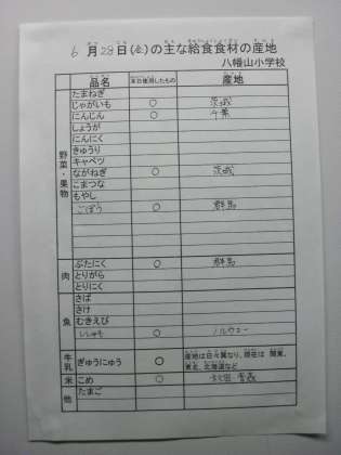 6月28日の主な給食食材の産地です。