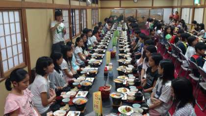 待ちに待った夕食の時間です。豪華なメニューに子どもたちの目が点。