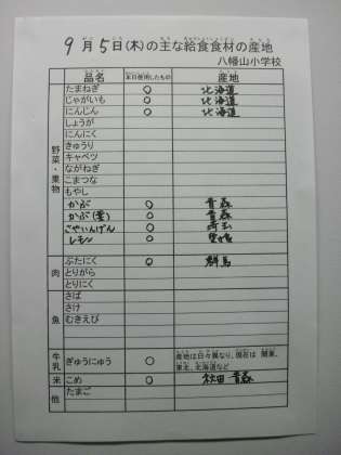 9月5日の主な給食食材の産地です。