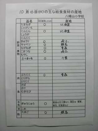 10月16日の主な給食食材の産地です。