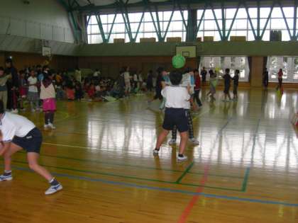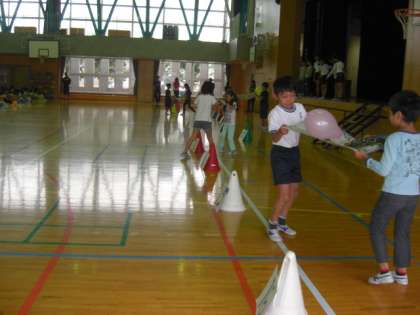 今日は、児童集会でした。新聞紙の上に風船をのせて兄弟学級どうしで競争をしました。どのグループも助け合っている姿が見られました。