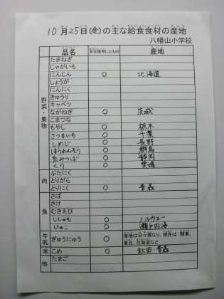 10月25日の主な給食食材の産地です。