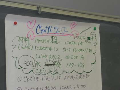6年生は、じゃがウインナーの調理実習をしています。グループで力を合わせて作ったお料理は、とてもおいしいです。