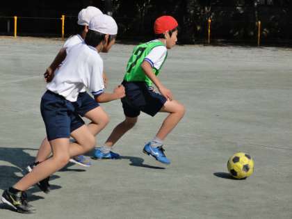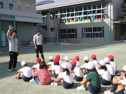 ヴェルディの2人の方にいらしていただき、サッカーを教えてもらいました。楽しみながら、工夫することでサッカーをより楽しむことができました。男子はもちろん女子も楽しんで活動することができました。ヴェルディの方々ありがとうございました。