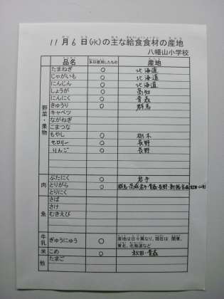 11月6日給食食材産地