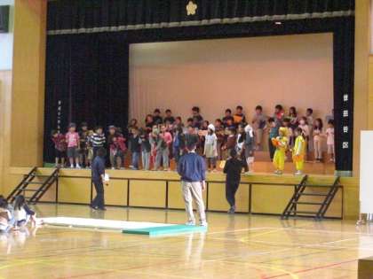 昨日、全職員で、学芸会の会場を作りました。照明も設置しました。