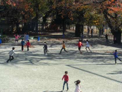 校庭では、走っている子が何人もいました。