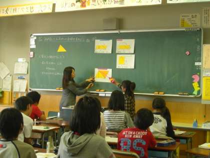 今日は、5校時に校内研究研究授業がありました。校内研究では、教員全員で授業を通して学び、授業改善をしています。今年度の教科は、算数です。今日は、5年生のステップグループ、星野先生の授業でした。「図形の面積」の単元で、三角形の面積の出し方について、今まで学習したことを生かして考える学習をしました。