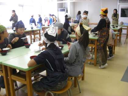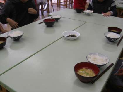 今日、5年生は、お米と味噌汁の学習でした。上手に作れてうれしそうです。約半年いっしょうけんめい育てて収穫したバケツ稲の脱穀をして玄米にしたものを、小松先生に炊いていただいて、食べてみました。7合もとれたそうです。玄米もおいしくいただきました。今日は、1組でしたが、来週2組もするそうです。