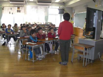 本校では、八幡山小学校の学区域に住んでいて、特別支援学校に通っている子どもで、希望される方と交流をしています。特別支援学校の担任と本校の担任とで相談し、できることをしています。