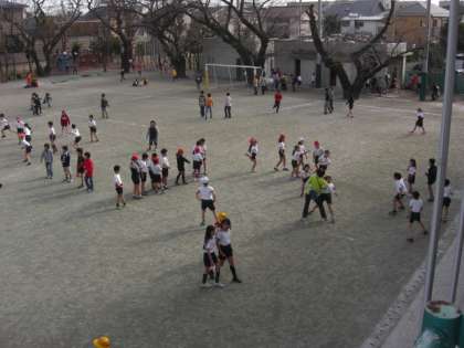 今日は、わくわくデーでした。たくさんの子どもたちが、校庭で遊んでいました。