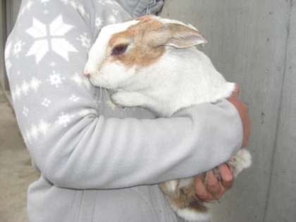 八幡山小学校のうさぎは、今3匹います。最近1羽増えました。名前は、ラブです。白い色に薄茶色の模様のうさぎです。